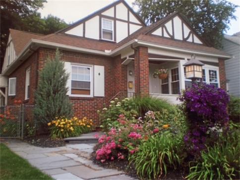 Dewitt NY Real Estate, Orvilton Neighborhood, 5 Bedroom Tudor - 312 Haddonfield Drive - Contact Richard Gordon at 315-882-0332 - This charming 5 bedroom Tudor style bungalow is located in the popular "Orvilton" neighborhood in Dewitt. This convenient area has Jamesville-Dewitt schools and is close to parks, shopping, and major highways. The professional landscaping in front is deceptively low maintenance, with new front stone steps and new driveway. Enjoy a cedar swing set on the patio, and wrought iron railings on porch. Inside there is fresh paint throughout and you'll find new windows and refinished hardwoods. In the cozy living room a large stone fireplace with a new gas insert awaits for cold winter months. Off the living room the front entry vestibule with large closet opens onto the front porch, and there is also bright sunroom. Enjoy incredible meals in the updated kitchen with new silestone countertops, sink and faucet, new oak cupboards and hardwood floors, new lighting with dimmers, and new appliances such as a stove dishwasher, and fridge. There is also an island/breakfast bar that opens onto the large eating area. Down the hall a full bath with original basket weave tile and pedestal sink adds to the vintage charm. Two ample sized rooms at the back of the house could also be used as den/office or play room. Upstairs there is a new closet in the master bedroom and a partial remodel of the master bath, featuring a dark wood vanity with granite top. "If you appreciate vintage charm and a perfect location, don't miss this offering."