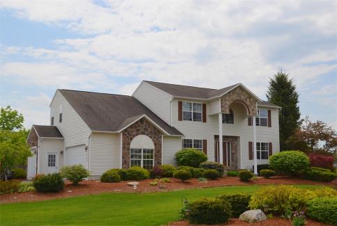 Cicero NY Real Estate, Pastures Neighborhood, 5 Bedroom Colonial- http://www.CNYAgent.com - Contact Bob McTague at 315-882-6610 – 6284 Addison Loomis - This beautiful 5 bedroom Colonial is perfectly situated on a corner lot in the popular "Pastures" neighborhood which is close to CNS school, parks, Oneida Lake, shopping, and major highways. The first floor features an open eat-in gourmet kitchen with granite and hardwoods, a sun room, a family room with a fireplace, a formal living and dining room, a half bath, a 1st floor bedroom and full bath. The second floor provides a master bedroom and bath, another full bath, and 3 other good sized bedrooms. There is a finished basement with a half bath. The exterior offers an in-ground pool. a deck, patio, fully fenced yard, lawn sprinkler system and a 3 car garage. Call now for more information!